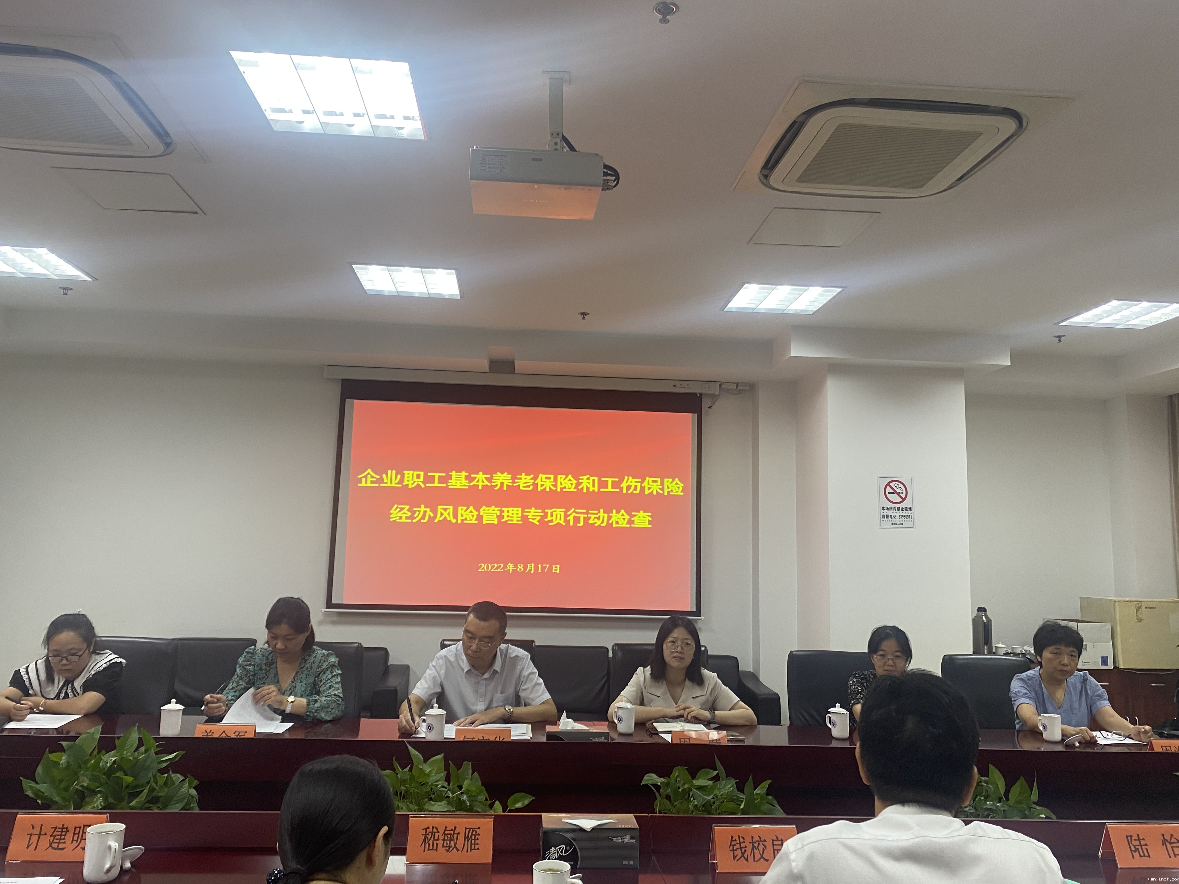 为进一步加强社会保险经办风险管理体系和管理能力建设,深入贯彻落实社会保险基金管理提升年行动要求,近期,省社保中心组织开展全省企业职工基本养老保险和工伤保险经办风险管理专项行动。8月17日,省检查组赴吴江区开展专项检查,吴江区人社局副局长钱校良陪同检查。