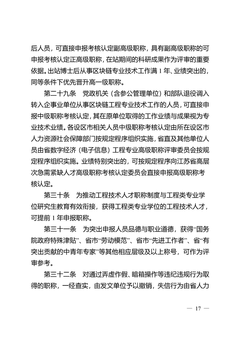 江苏省数字经济(区块链)工程专业技术资格条件(试行)