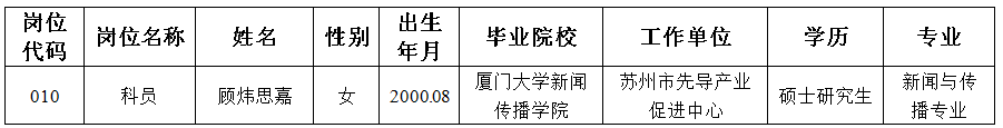 苏州市先导产业促进中心公开招聘工作人员录用公示