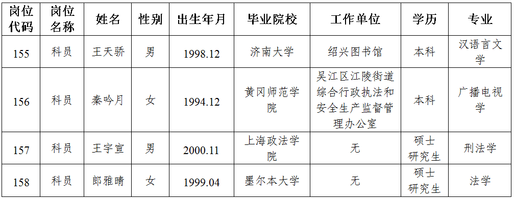 根据《苏州市2025年市属事业单位公开招聘工作人员公告》,经过笔试、面试、体检和考核合格,拟录用以下4名同志,现公示如下: